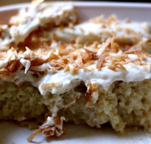 This cake tastes even better than it sounds. I turned to this recipe because I had rhubarb on hand, but didn’t want to go to the trouble of a pie, and it turned out just as pretty as the magazine picture, and tasted just summer-perfect. I’ve been waiting so long to have a rhubarb plant and it’s so wonderful picking it. Aaah, summer. This recipe comes from the April 2015 Bon Appetit.